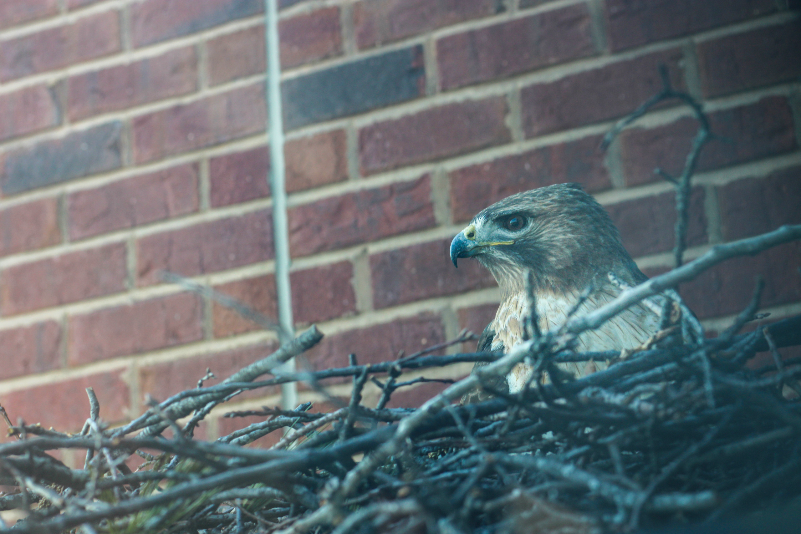 “If the hawks have no issues with people walking under the nest, my advice is to let them go through their nesting cycle,” Meshach stated in the email. “Best to let the nest be until the kids fledge, and power-wash the cement after the chicks have fledged.”